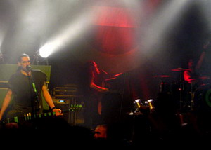 I kad su se oko 21 sat ugasila svjetla, a publika, njih oko 400-tinjak, koncentrirala se prema bini da konačno počne koncert "the drab four" ili "the rehab four" kako sami sebe u zajebanciji nazivaju aludirajući na Beatlese, iz razglasa se prolomio - "pačji ples". Ta debilkasto-polkasta pjesma, na koju se možeš odvaliti samo ako imaš hrpu lažnih bonova za pivo na Oktoberfestu ili nekoj domaćoj pivijadi (a prema nekim reakcijama u publici i negazirana bezalkoholna pića su dovoljna), vrtila se kojih 20-tak minuta u sporijim ili bržim varijantama uz neprestano paljenje i gašenje svjetala prije ponovnog puštanja, što pak dobrano iznerviralo dio publike. Ali TON su ionako zajebantska skupina koja neki svoj uvrnuti smisao za šalu zna upakirati u ozbiljne tonove, pa nije ni čudno da ih onda znaju i preozbiljno shvaćati. Stoga ni We Hate Everyone nije čudan odabir s kojom otpočeli koncert uz gromoglasno oduševljenje mase. Odlična rasvjeta, prejak i mutan razglas, ali TON samouvjereno gospodare pozornicom, a najživahniji od njih je Josh Silver, klavijaturist i vokalist, čija sijeda brada i "griva" na glavi te razvaljivanje klavijatura podsjećaju na nekog križanca Sai Babe i tasmanijske nemani. Slijedi Profits Of Doom, zvuk se u dvorani rapidno poboljšava, ali ne i za Petera koji bi kao najradije razvalio svoje pojačalo, tehničar mu na sto muka, Peter nervozno poteže gutljaje makedonskog vina "Tuga sa juga", a onda nešto promrmlja i nestane iza pozornice, da bi se kojih par minuta vratio natrag i podigao palac tehničaru u stilu "sad sve štima". Navodno je od vinčine "abortirao" u wc-u, no i da nije to istina, takva priča zasigurno ne bi naškodila njegovoj reputaciji. Ali da čovjek ima glas takve dubine kao da dolazi iz samog podzemnog svijeta, to ostaje činjenicom, kao i da bas gitara u njegovim rukama prema freudovskom tumačenju izgleda kao produženi falus, iako i tu kruži legenda da tog dvometraša priroda na nije zakinula i na proporcionalnoj dužini (ne trebam valjda napominjati čega). Bilo kako bilo, TON su Anesthesiom, These Three Things i Kill You Tonight sve više oduševljavali publiku, a zatim nestali iza pozornice. Iako im pjesme znaju imati epsku duljinu, nekako se publici to činilo prekratko pa ih uz povike "you suck!" dozivala natrag.